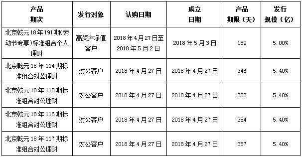 中国建设银行北京市分行定于2018年4月27日发行理财产品,现将相关发行情况公告如下: