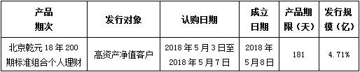 中国建设银行北京市分行定于2018年5月3日发行理财产品,现将相关发行情况公告如下: