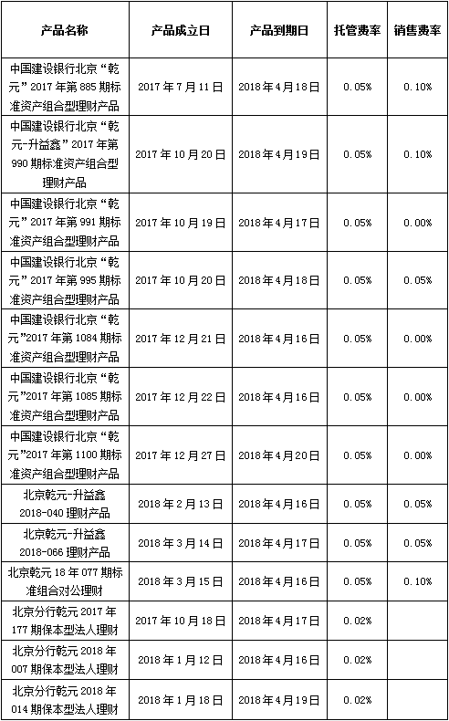 中国建设银行对公类理财产品终止及清算公告2018年4月20日