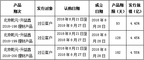 中国建设银行北京市分行定于2018年8月21日发行理财产品,现将相关发行情况公告如下: