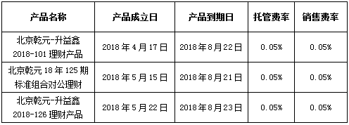 注:上述产品按照说明书中关于资产的投资类型和比例的约定进行投资,所投资非标准化债权资产已进行披露,产品运作收益超出客户实际年化收益率、托管费率及销售费率的部分将作为产品的浮动管理费用。特此公告。