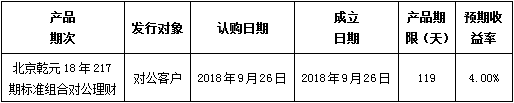 中国建设银行北京市分行定于2018年9月26日发行理财产品,现将相关发行情况公告如下: