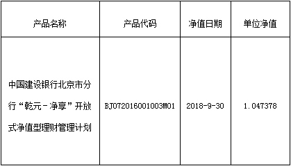 中国建设银行北京市分行“乾元-净享”开放式净值型理财管理计划净值公布如下: