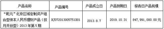 “乾元”北京区域定制资产组合型保本人民币理财产品(按月开放型)2013年第5期