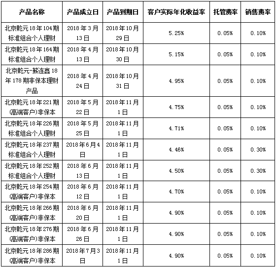 注:上述产品按照说明书中关于资产的投资类型和比例的约定进行投资,所投资非标准化债权资产已进行披露,产品运作收益超出客户实际年化收益率、托管费率及销售费率的部分将作为产品的浮动管理费用。特此公告。
