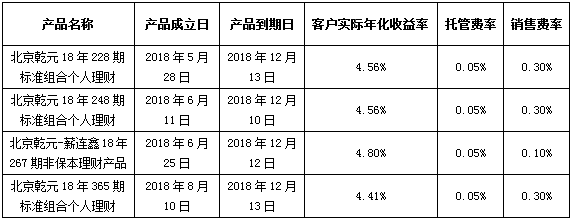 注:上述产品按照说明书中关于资产的投资类型和比例的约定进行投资,所投资非标准化债权资产已进行披露,产品运作收益超出客户实际年化收益率、托管费率及销售费率的部分将作为产品的浮动管理费用。特此公告。
