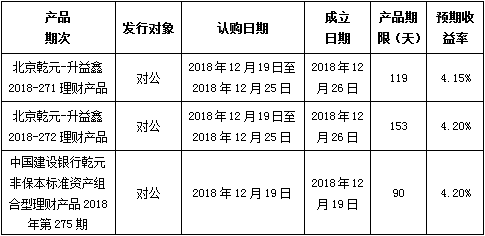 建行北京市分行理财产品发行公告2018年12月19日