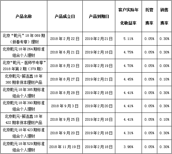 注:上述产品按照说明书中关于资产的投资类型和比例的约定进行投资,所投资非标准化债权资产已进行披露,产品运作收益超出客户实际年化收益率、托管费率及销售费率的部分将作为产品的浮动管理费用。特此公告。