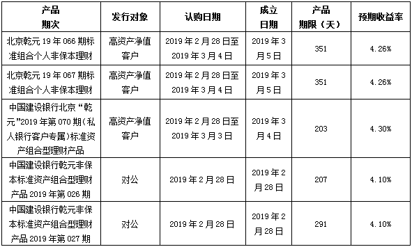 中国建设银行北京市分行定于2019年2月28日发行理财产品,现将相关发行情况公告如下: