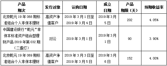 中国建设银行北京市分行定于2019年3月1日发行理财产品,现将相关发行情况公告如下: