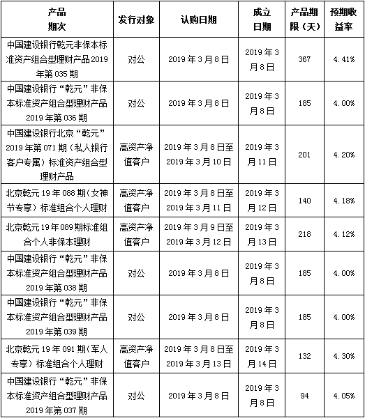 中国建设银行北京市分行定于2019年3月8日发行理财产品,现将相关发行情况公告如下: