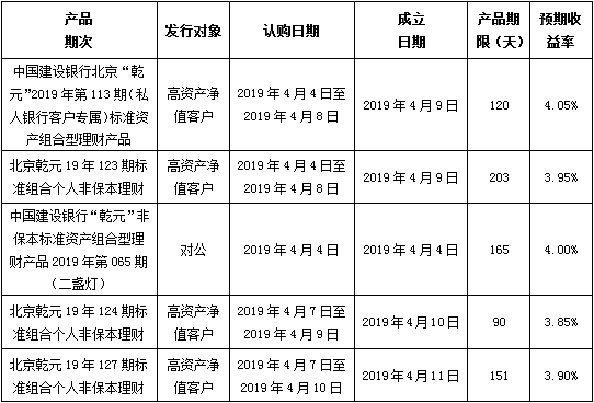中国建设银行北京市分行定于2019年4月4日发行理财产品,现将相关发行情况公告如下: