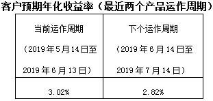 下个运作周期客户预期年化收益率于2019年6月14日(含)开始执行。