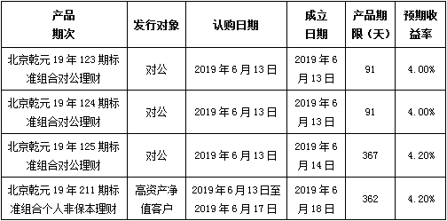 中国建设银行北京市分行定于2019年6月13日发行理财产品,现将相关发行情况公告如下: