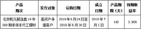 中国建设银行北京市分行定于2019年6月24日发行理财产品,现将相关发行情况公告如下: