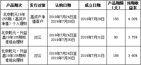 中国建设银行北京市分行定于2019年7月24日发行理财产品,现将相关发行情况公告如下: