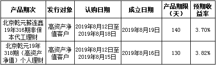 中国建设银行北京市分行定于2019年8月12日发行理财产品,现将相关发行情况公告如下: