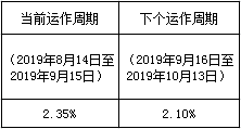 下个运作周期客户预期年化收益率于2019年9月16日(含)开始执行。