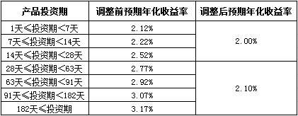 上述调整后的客户预期年化收益率拟于2019年10月9日(含)开始执行。对于2019年10月9日前已经申购成功且未赎回的所有存量客户理财资金,2019年10月9日前执行原有客户预期年化收益率标准,2019年10月9日(含)后执行调整后客户预期年化收益率标准。