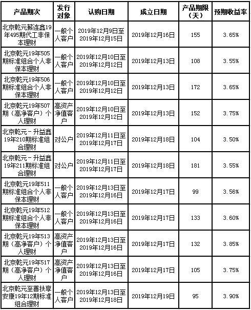 建行北京市分行理财产品发行公告2019年12月13日