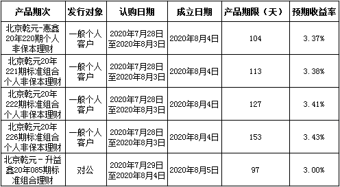 建行北京市分行理财产品发行公告2020年8月3日