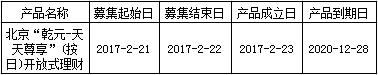 “乾元-天天尊享”(按日开放型)人民币非保本理财产品于2017年2月23日正式成立。截至报告日,本产品规模为7,141,668,606.41元。