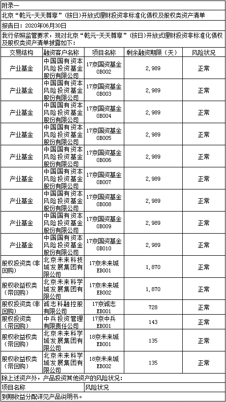 九、投资非标准化债权及股权类资产清单(见附录一)