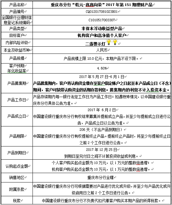 2017年第151期理财产品说明书