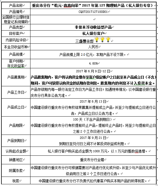 3.中国建设银行重庆市分行可根据市场情况等调整产品规模上、下限,并最迟于调整规模上下限当日进行公告。