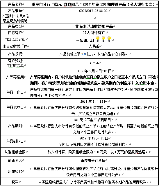 3.中国建设银行重庆市分行可根据市场情况等调整产品规模上、下限,并最迟于调整规模上下限当日进行公告。