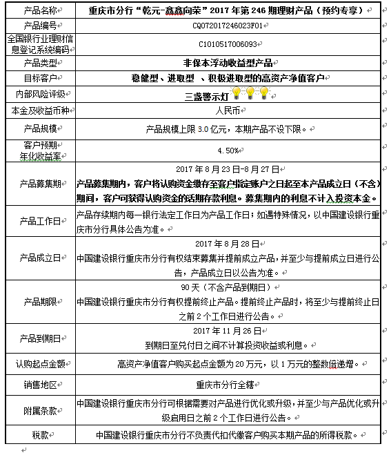 2017年第246期理财产品说明书