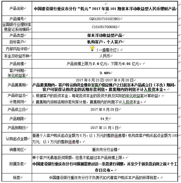 中国建设银行重庆市分行“乾元”2017年第101期