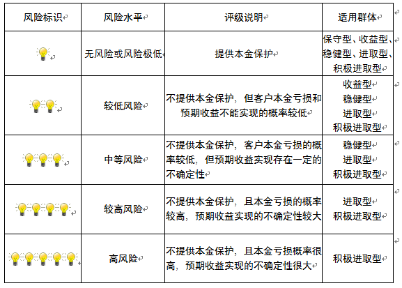 ,风险水平属于较低风险。最不利情况下,您将损失全部收益甚至包括全部本金。本理财产品适用于收益型、稳健型、进取型 、积极进取型客户。