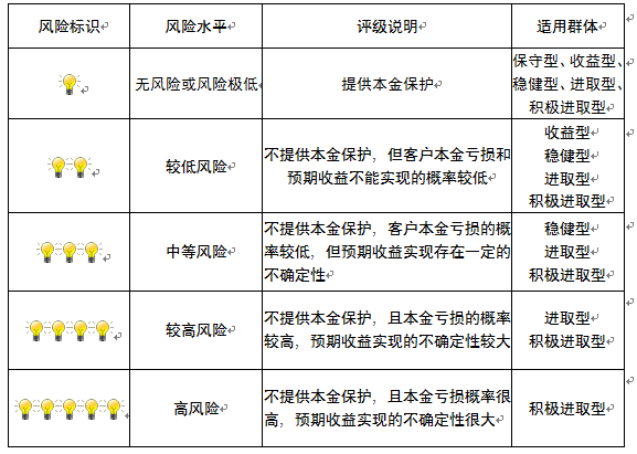 ,风险水平属于中等风险。最不利情况下,您将损失全部收益甚至包括全部本金。本理财产品适用于稳健型、进取型 、积极进取型客户。