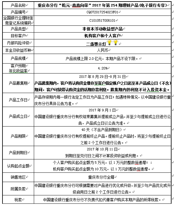 3.中国建设银行重庆市分行可根据市场情况等调整产品规模上、下限,并最迟于调整规模上下限当日进行公告。