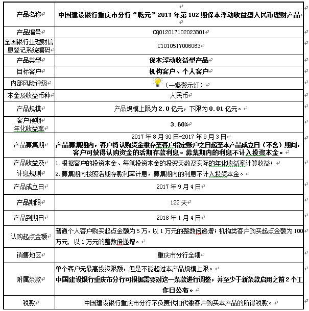 中国建设银行重庆市分行“乾元”2017年第102期
