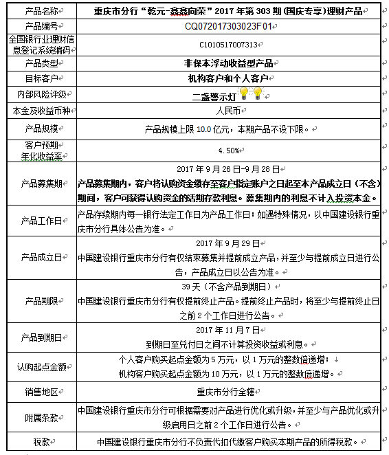 3.中国建设银行重庆市分行可根据市场情况等调整产品规模上、下限,并最迟于调整规模上下限当日进行公告。
