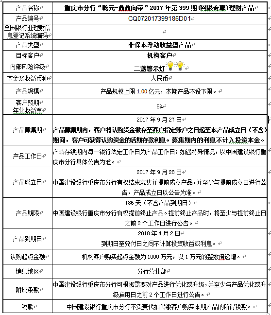 3.中国建设银行重庆市分行可根据市场情况等调整产品规模上、下限,并最迟于调整规模上下限当日进行公告。