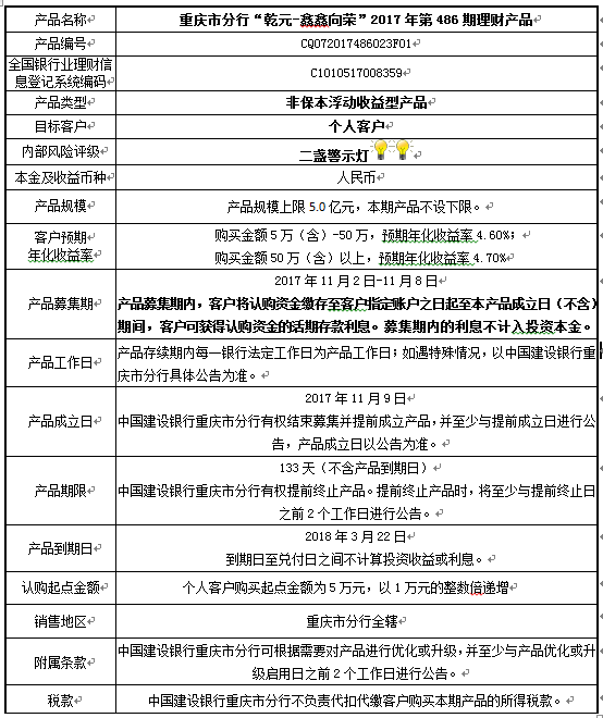 2017年第486期理财产品说明书