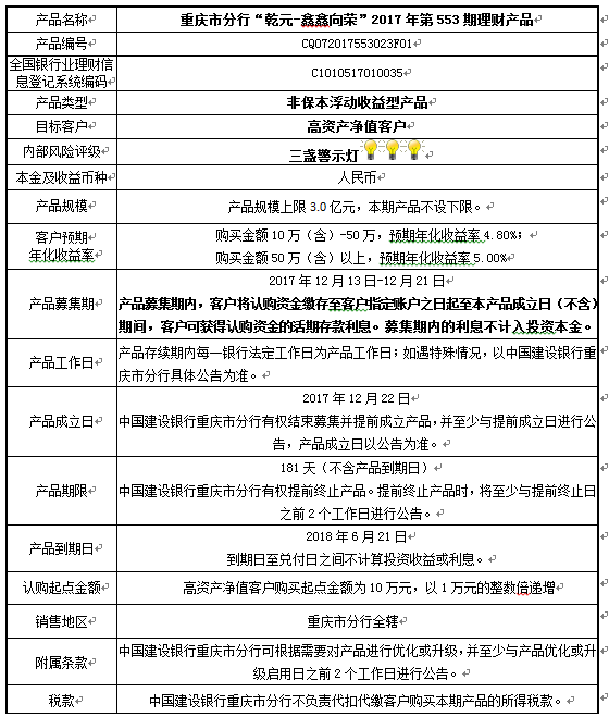 2017年第553期理财产品说明书