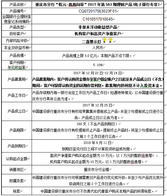 1.本期产品规模上限:5.0亿元。在本期产品募集期内,对本期产品的认购金额达到本期理财产品规模上限,则中国建设银行重庆市分行有权利但无义务停止本期产品的认购,已经认购成功的客户投资权益不受影响。