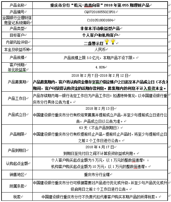 3.中国建设银行重庆市分行可根据市场情况等调整产品规模上、下限,并最迟于调整规模上下限当日进行公告。
