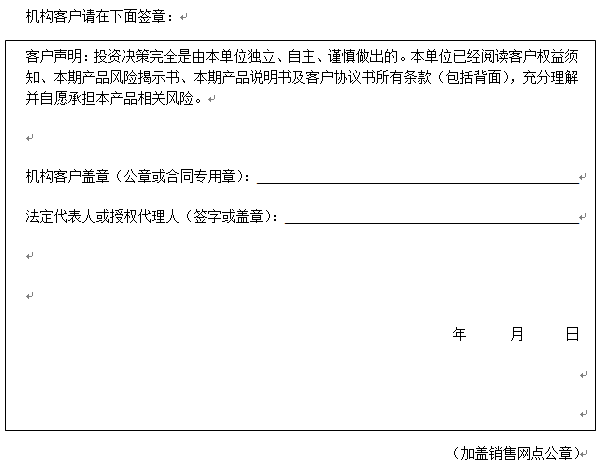 在您签署《中国建设银行股份有限公司理财产品客户协议书》前,应当仔细阅读客户权益须知、本风险揭示书及本产品的产品说明书的全部内容,同时向中国建设银行重庆市分行了解本产品的其他相关信息,并自己独立做出是否认(申)购本产品的决定。
