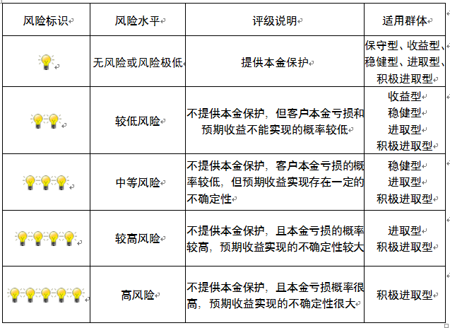本产品为非保本浮动收益型理财产品,不保证本金和收益,请您充分认识投资风险,谨慎投资。本期产品期限为120天(中国建设银行有权对产品进行展期或提前终止),存续期内,产品不接受申购或赎回申请。本期产品内部风险评级级别为盏警示灯   ,风险水平属于中等风险。最不利情况下,您将损失全部收益甚至包括全部本金。本理财产品适用于稳健型、进取型 积极进取型客户。
