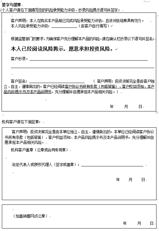 您签署本风险揭示书、客户协议书,并将资金委托给中国建设银行重庆市分行运作是您真实的意思表示。本风险揭示书及相应的客户协议书、产品说明书、客户权益须知将共同构成贵我双方理财合同的有效组成部分。