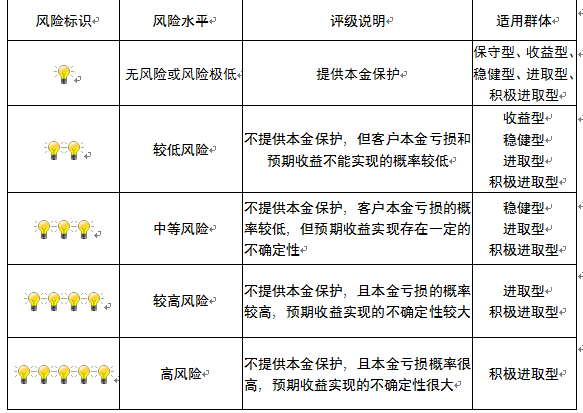 ,风险水平属于较低风险。最不利情况下,您将损失全部收益甚至包括全部本金。本理财产品适用于收益型、稳健型、进取型 、积极进取型客户。