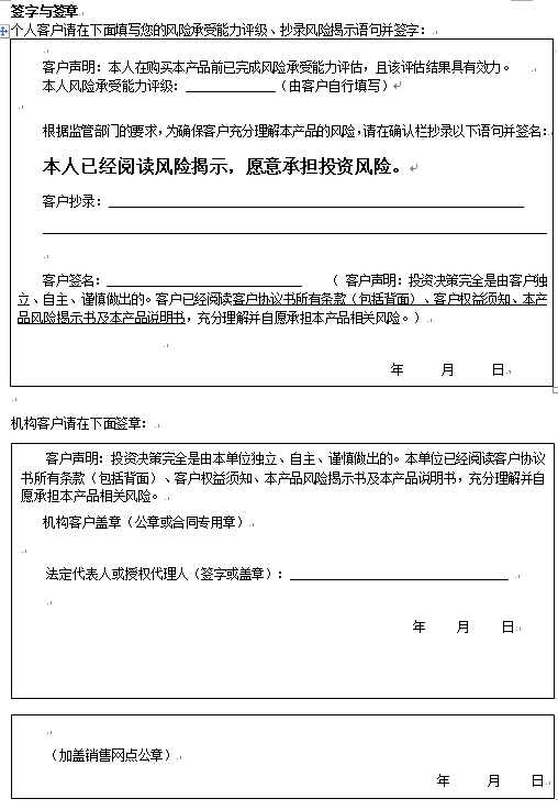 您签署本风险揭示书、客户协议书,并将资金委托给中国建设银行重庆市分行运作是您真实的意思表示。本风险揭示书及相应的客户协议书、产品说明书、客户权益须知将共同构成贵我双方理财合同的有效组成部分。