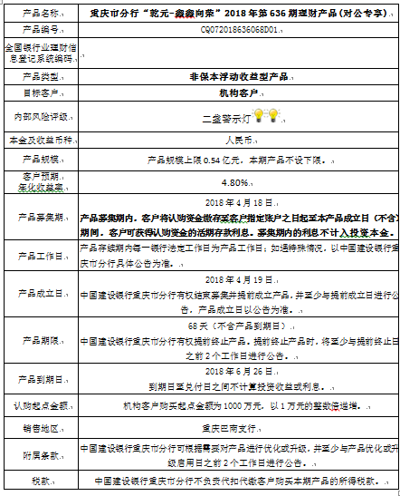 中国建设银行重庆市分行“乾元-鑫鑫向荣” 2018年第636期理财产品风险揭示书和说明书