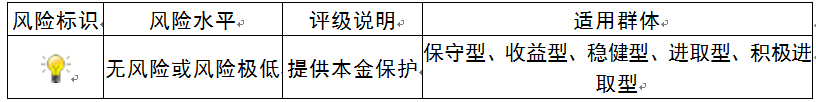 本期产品为保本浮动收益型理财产品,本理财产品有投资风险,只保障理财资金本金,不保证理财收益,您应当充分认识投资风险,谨慎投资。本期产品期限为180天(中国建设银行重庆市分行有权对产品进行展期或提前终止)。本期产品内部风险评级级别为一盏警示灯,风险程度属于无风险或风险极低,适用于保守型、收益型、稳健型、进取型及积极进取型投资者。最不利情况下,客户只能收回投资本金,不能获得任何投资收益。