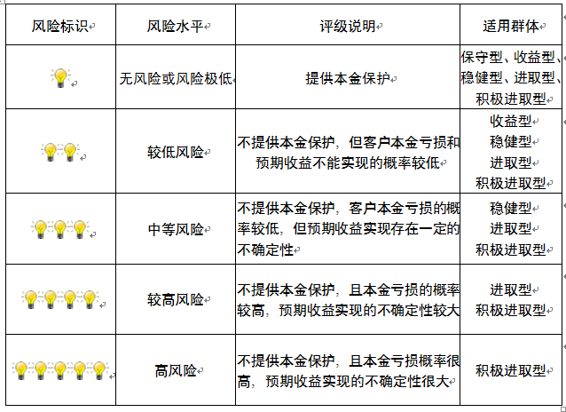 本产品为非保本浮动收益型理财产品,不保证本金和收益,请您充分认识投资风险,谨慎投资。本期产品期限为153天(中国建设银行有权对产品进行展期或提前终止),存续期内,产品不接受申购或赎回申请。本期产品内部风险评级级别为盏警示灯 ,风险水平属于较低风险。最不利情况下,您将损失全部收益甚至包括全部本金。本理财产品适用于收益型、稳健型、进取型 积极进取型客户。